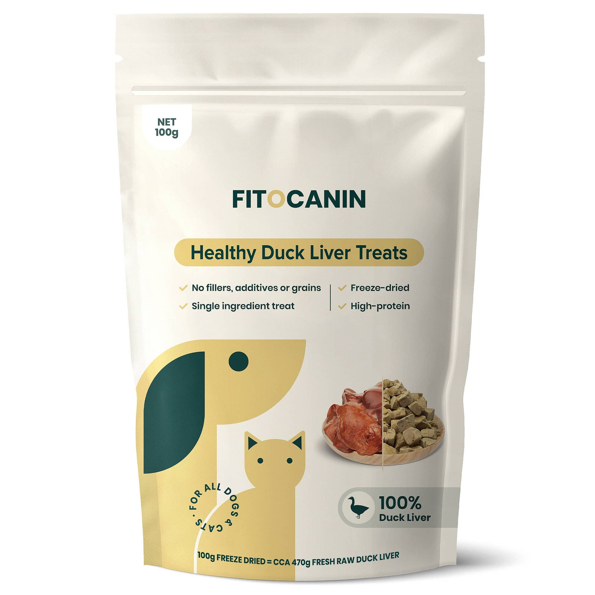 Pamlsky z kachních jater Fitocanin jsou vyrobeny ze 100% mrazem sušených kachních jater – nic jiného. Bez přísad, bez látek zvýrazňující chuť, bez levných plnidel. Lyofilizace zachovává více živin a chuti než pečení nebo sušení horkým vzduchem.